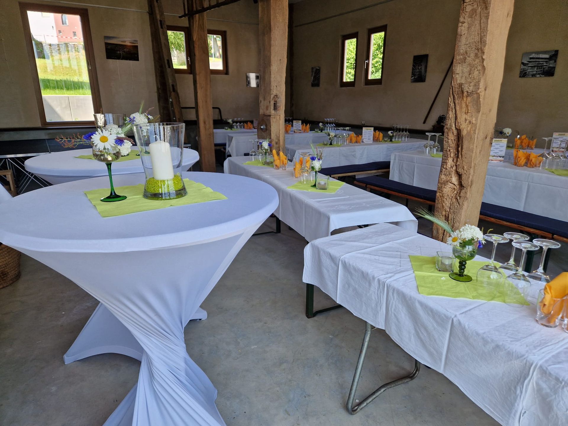 Bierbänke mit Sitzkissen, Bestuhlung mit ca. 55 Stühlen möglich